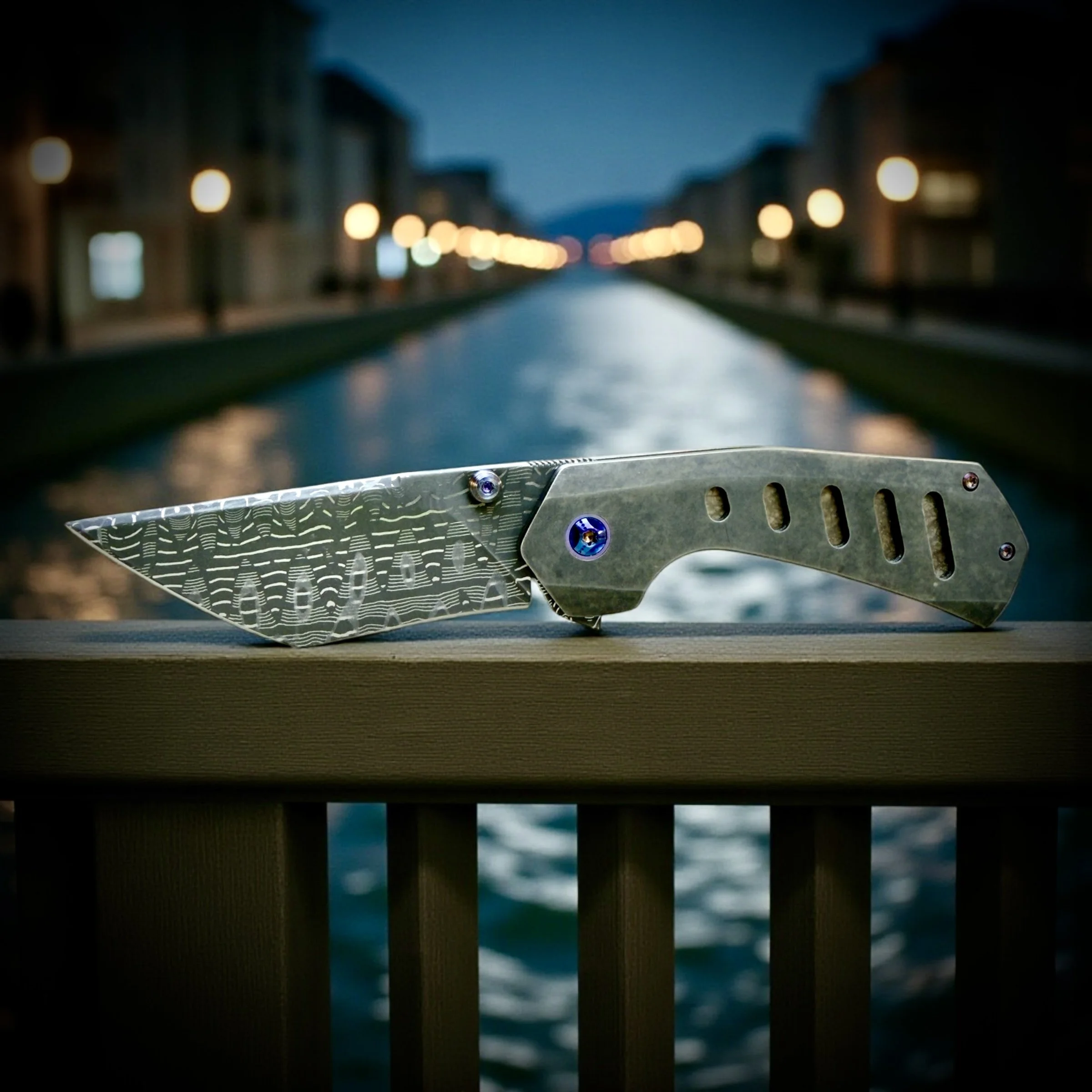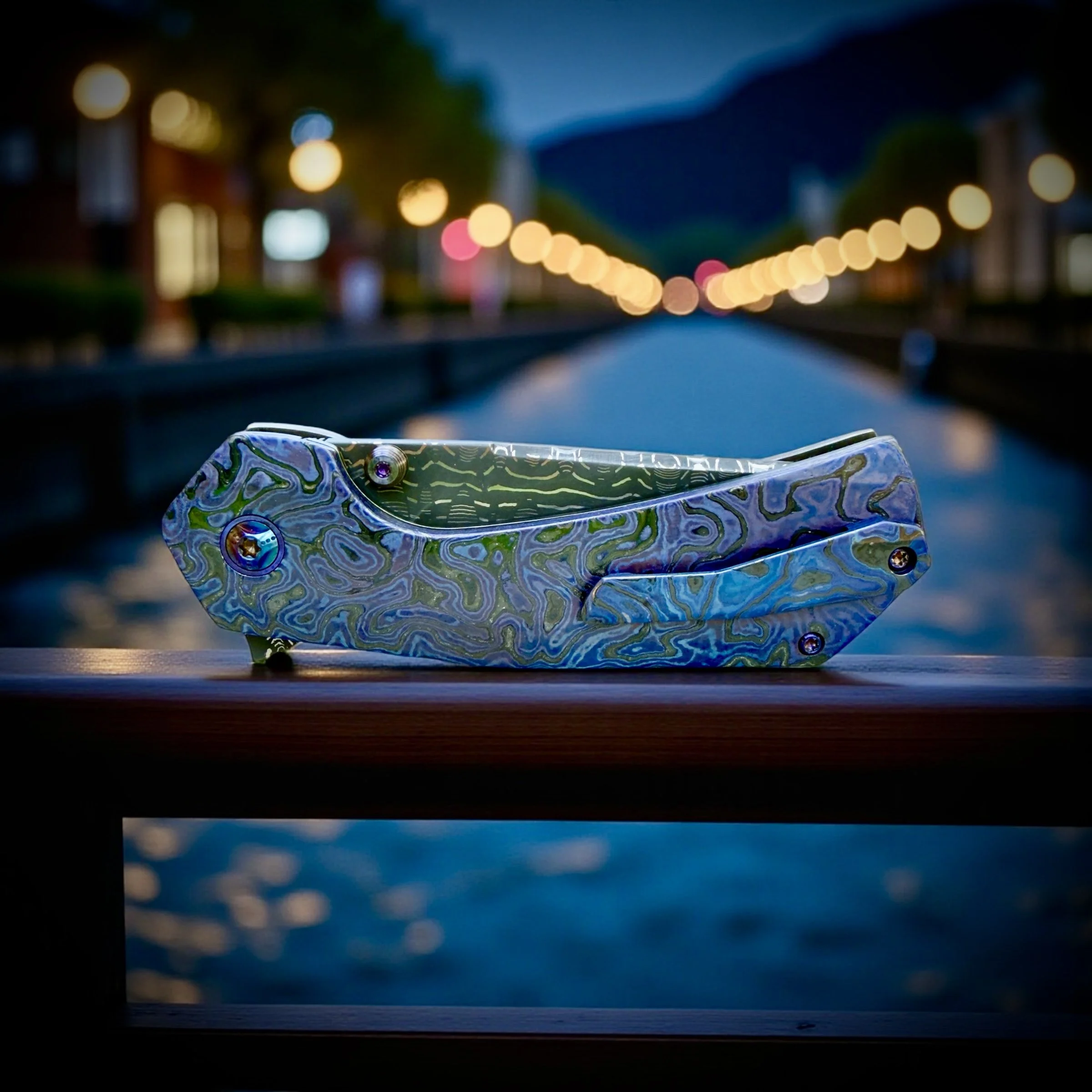Handle: Dark Timascus/Blackened & Stonewashed Titanium
